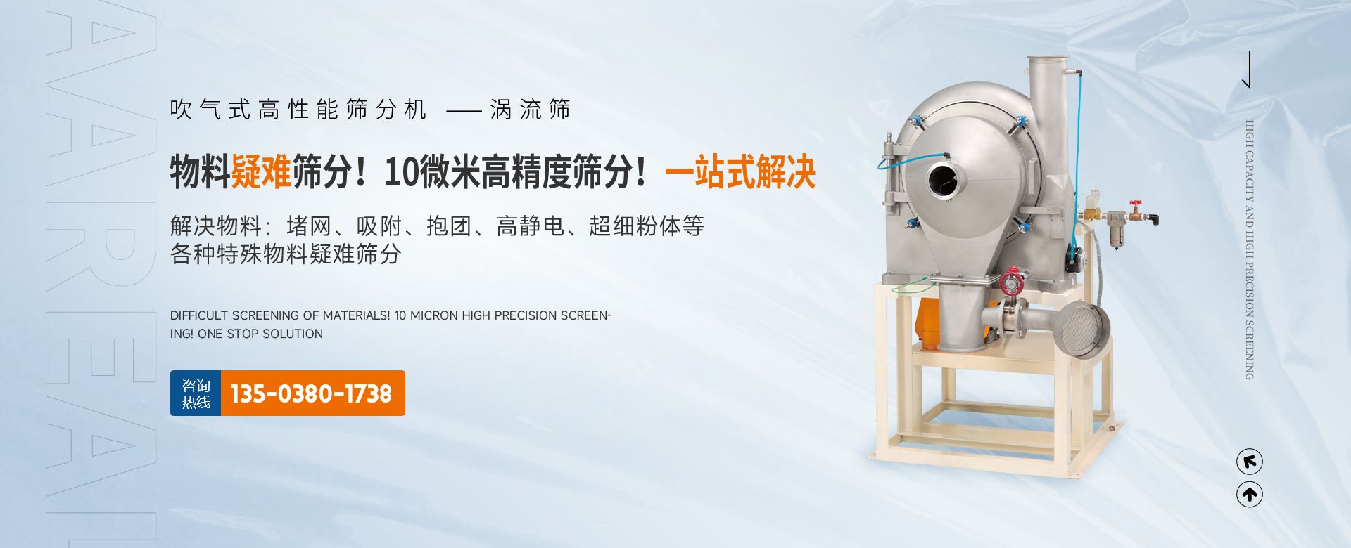 阿 瑞 爾(AAREAL)? 是從事篩分·過濾設備設計和制造的高新技術企業,擁有先進的生產設備、粉體篩分分析實驗室,在中國廣州市設辦事處。祝賀:新鄉市超大產能精細篩分技術工程中心在阿瑞爾(AAREAL)成立?。。≡诰€大產能篩分和在線動態過濾是阿 瑞 爾(AAREAL)?的產品特點■ 在線大產能篩分,突破了傳統篩分觀念,工業化篩分,實現大產能、高能效篩分。以低故障率、低停機率、低使用成本、高產能、高精度、高能效為您帶來巨大意外收益?!?阿瑞爾(AAREAL)擁有的回轉篩分技術,擁有的近百種篩分解決方案及上千種物料的篩分經驗,會給您展現全新的篩分設備,幫您實現大產能篩分 高精度篩分 疑難篩分?!?阿瑞爾(AAREAL)的品質保證:阿 瑞 爾(AAREAL)? 是高品質篩分設備制造商高品質是阿 瑞 爾(AAREAL)? 質量準則。優品設備 合理篩分是阿 瑞 爾(AAREAL)?回報客戶的驗收標準?!覀儾坏珦碛邢冗M的生產設備,而且對于每一道工序,每一個細節,我們都要精工細作。對于客戶的每一個細微的問題,我們都要認真解決。——精心制作和用心服務是我們對客戶的責任。阿瑞爾(AAREAL)是您成功道路上值得信賴的、合作伙伴,以良好的質量、經驗和服務享譽多個國家,確保您安心地選擇每一件產品,阿瑞爾(AAREAL)竭誠與國內外商家雙贏合作,共同發展,共創輝煌!阿瑞爾(AAREAL)——您正確的選擇。